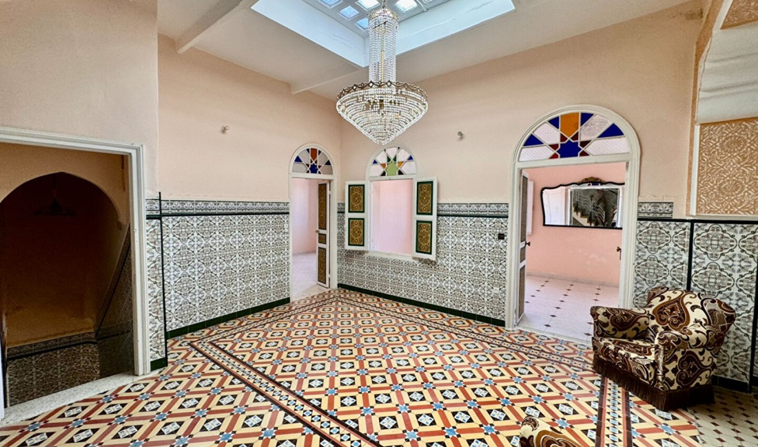 Fabulous house located in the heart of the Kasbah over looking breathtaking views of the medina, the city, and the bay. This house consists of a ground floor that has two separate entrances. one space was used as a commercial space before or it could be habitable, and it has a Living room. Kitchen. Bathroom with bathroom. On the first floor there is Large living room with a fireplace. Skylight. 2 bedrooms with windows that has a view of the medina and the bay of Tangier, Bathroom, and a toilet. On the second floor we have a Kitchen. Single bedroom and a bathroom. Large terrace. and lastly we have a roof terrace, all outside spaces benefit from those amazing views. The house is facing south. Sunshine all day long. Refreshment work to be planned. The property is titled and the price shown is not including agency fees.